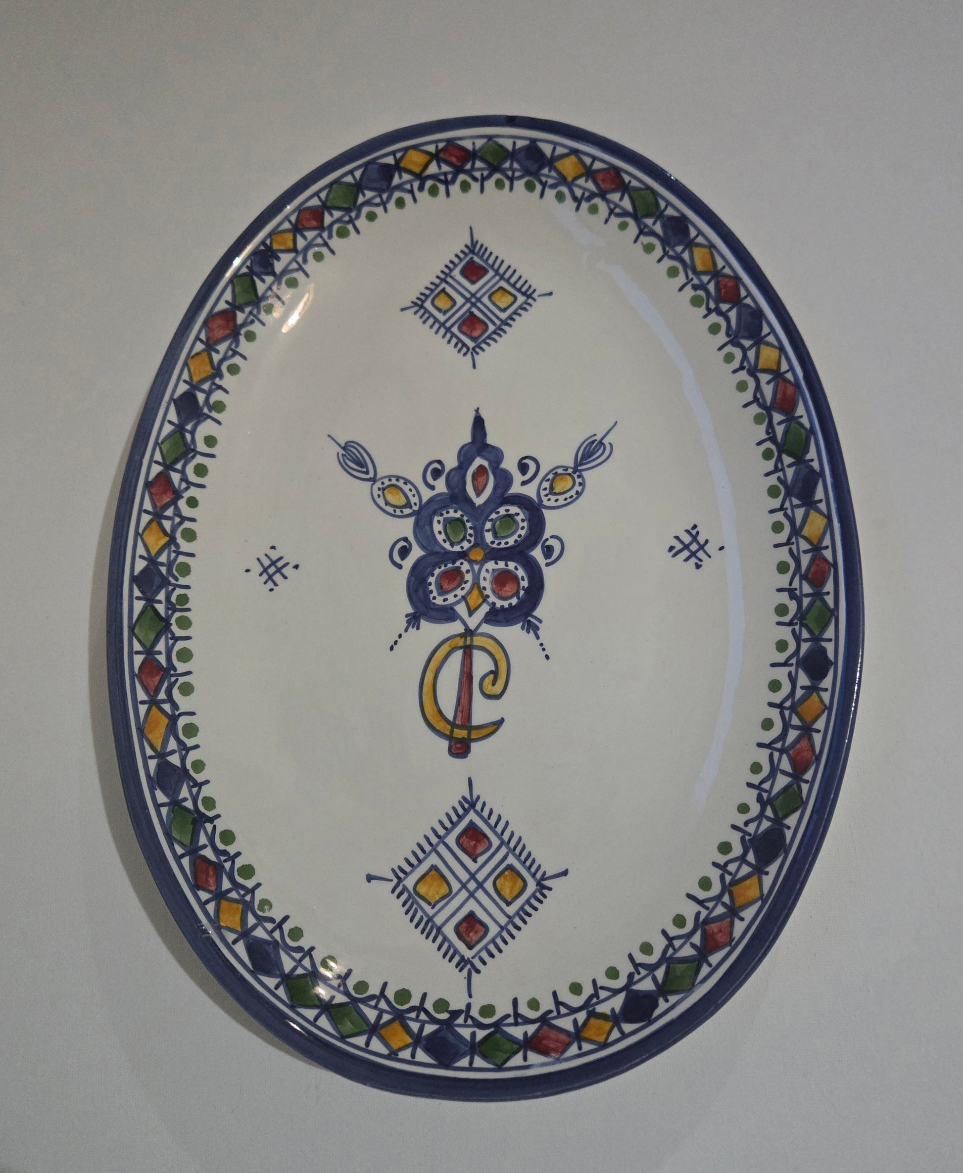 Handgefertigte weiße Keramikteller aus natürlichen, lebensmittelechten Materialien. Jedes Stück ist mit traditionellen Mustern aus natürlichen Pigmenten gemalen und somit einzigartig sowie umweltfreundlich.