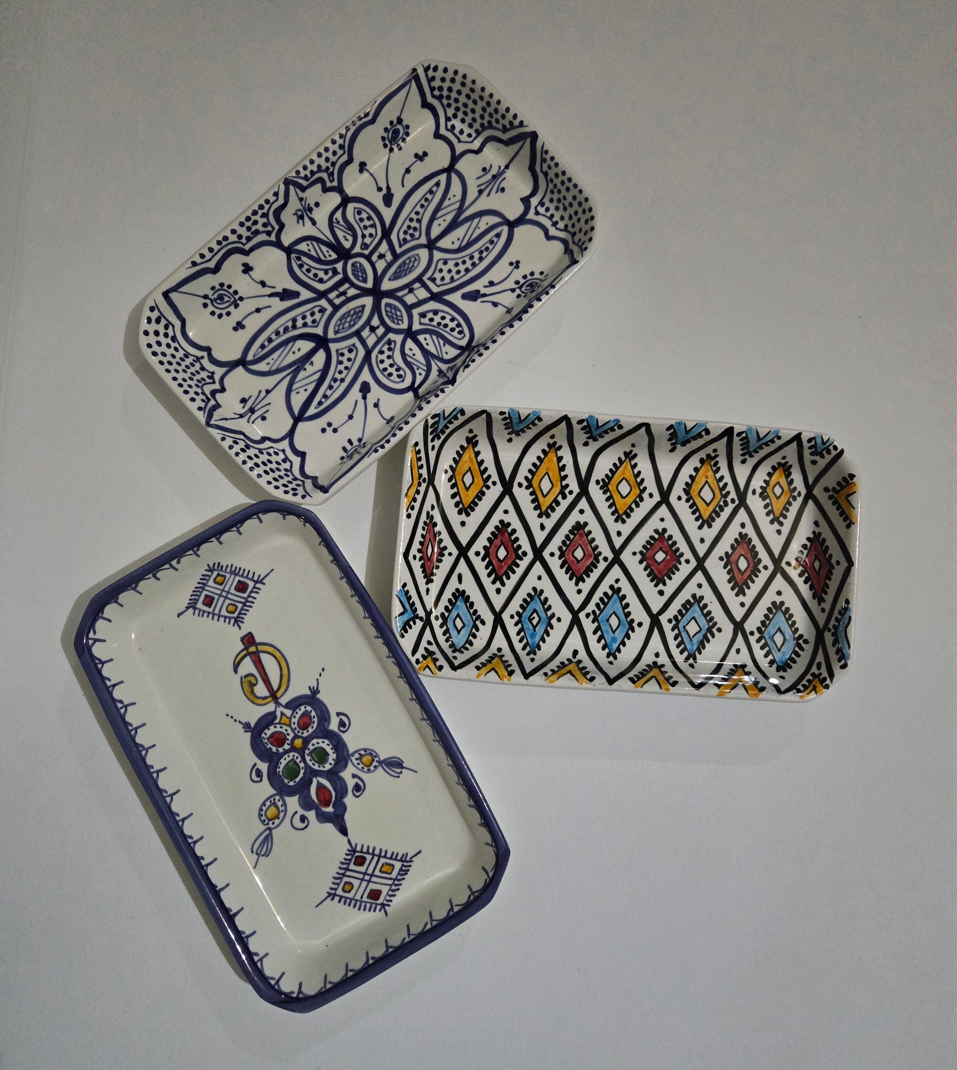 Ein handgefertigter weißer Keramikteller aus natürlichen, lebensmittelechten Materialien. Jedes Stück ist mit traditionellen Mustern und natürlichen Pigmenten verziert, was es einzigartig und umweltfreundlich macht.